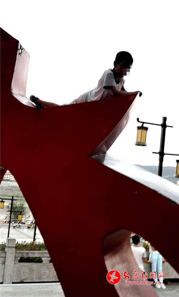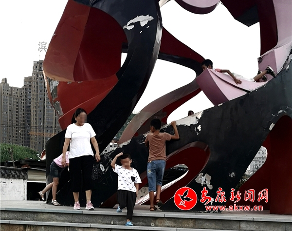 近日,記者在漢調(diào)二黃文化園看到,游玩的市民絡(luò)繹不絕,大部分市民都能做到文明游園,但其中也存在不文明行為。這里是文化園主題雕塑,幾個(gè)10歲左右的小男孩不斷攀爬雕塑,并在離地面約2米的高處逗留,現(xiàn)場既無工作人員勸導(dǎo)也沒有“禁止攀爬”的相關(guān)提示牌。記者 潘潤生 攝