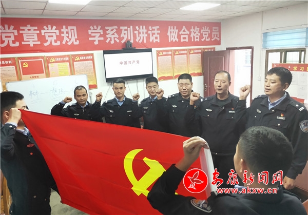 活動中,支部書記為全體黨員講了生動的一堂黨課,集體重溫了入黨誓詞,一起觀看了警示教育片《警鐘》。全體黨員干部面對鮮紅的黨旗莊嚴(yán)宣誓,重溫入黨誓詞,接受理想信念教育,心靈得到了又一次凈化。最后通過相互交流學(xué)習(xí)心得、討論各自思想感受,紛紛表示,要珍惜先輩們負重前行換來的和諧社會,努力用自己的實際行動扎實做好本職工作,以高度的政治責(zé)任感,積極為示范區(qū)人民群眾創(chuàng)造安全、暢通、有序的道路交通環(huán)境。