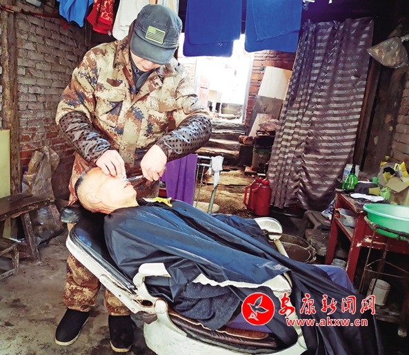 正在為顧客剃須的老手藝人。 孫妙鴻 攝