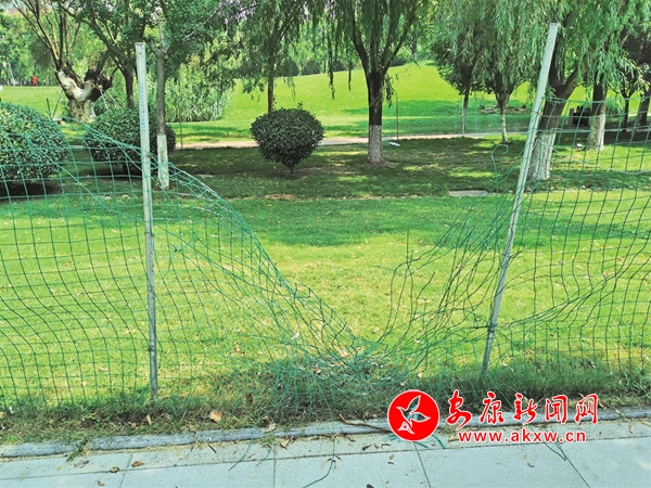 清明節(jié)期間,安康高新區(qū)運動公園內(nèi)5處圍網(wǎng)被游人破壞。(王琳 攝)
