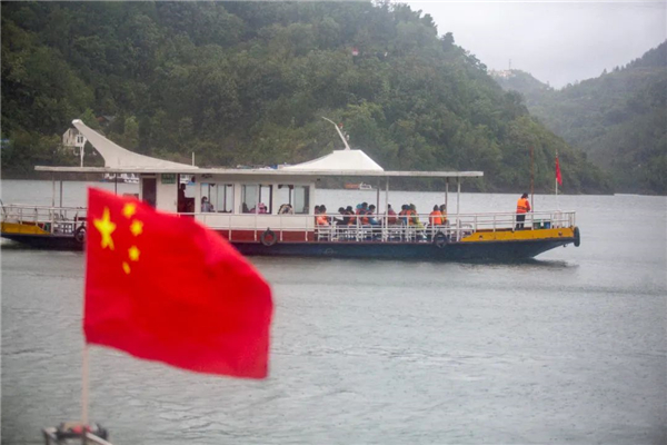 10月4日、重陽節(jié),雖然陰雨襲擾江面,但瀛湖景區(qū)溫度不減、熱情滿滿。在工作人員的疏導(dǎo)下,游客登船,開啟了雨中游瀛湖模式。