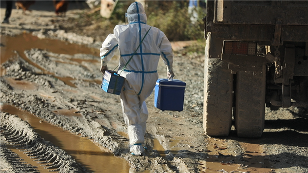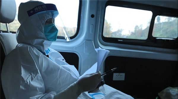 11月25日中午,忙完第一輪核酸采集,再接到流調(diào)通知單后,王康又立馬帶著他的“小伙伴”前往三里社區(qū)為居家隔離人員做核酸檢測(cè),溝深路滑,因前幾日陰雨天氣路面濕滑,在上一處陡坡時(shí),車輪瞬間開始側(cè)滑,但是時(shí)間緊迫只能一試再試,大概試了20余次,在村上壓路車的幫助下,又試了兩次車子終于緩緩啟動(dòng)。喜悅之余他們就即刻趕往隔離群眾家中,“我們快一點(diǎn),再快一點(diǎn),就能讓等待的人少受一點(diǎn)冷”,這是“大白”們共同的心愿。