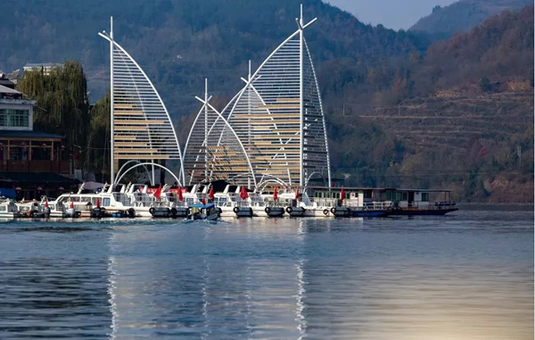 初到安康市漢濱區(qū)流水鎮(zhèn),放眼望去,青石鋪就的街道,頗具古風(fēng)的酒肆店面,令人耳目一新。緩步前行,步行百余步,及至碼頭,豁然開朗,碧水蜿蜒于青山之間,輕舟搖曳,漸行漸遠,不禁想起唐代詩人李白的那句“孤帆遠影碧空盡,唯見長江天際流”,飽具詩情畫意。