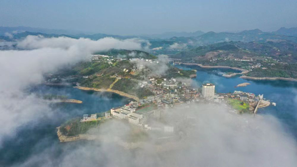 難忘流水的“魚”水情。好山好水好風(fēng)光,清晨的流水鎮(zhèn),寒江泛起如煙似幻的薄霧,繚繞于群山,仿若萬丈白龍酣眠,觸及此景,除了詩興,便是“魚”水情。唐朝李群玉曾有詩曰:七尺青竿一丈絲,菰蒲葉里逐風(fēng)吹。流水鎮(zhèn)作為天然的釣魚場,每到7月初禁漁期結(jié)束,各地游客紛至沓來,或站立山腳或蹲坐橋邊或泛輕舟,極盡魚趣,一掃心中煩悶。作為不懂“魚”事的我,也忍不住舉手拋香餌,盡管十釣九空,遺憾之余,更多的是淺嘗輒止后的意猶未盡。