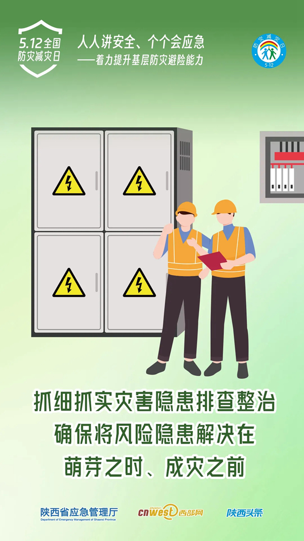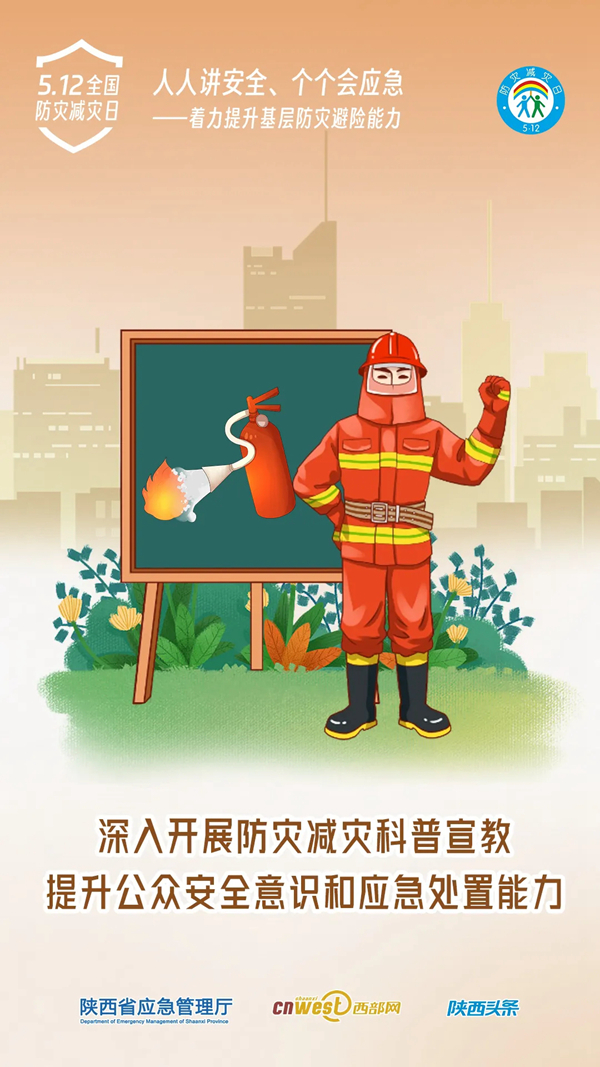 今年5月12日是第16個全國防災(zāi)減災(zāi)日,5月11日至17日為防災(zāi)減災(zāi)宣傳周。今年全國防災(zāi)減災(zāi)日主題為“人人講安全、個個會應(yīng)急——著力提升基層防災(zāi)避險能力”