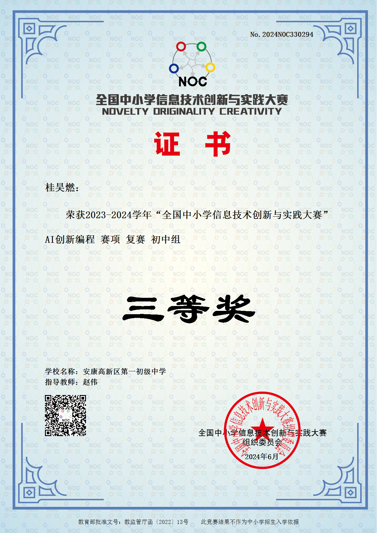 據(jù)悉,“全國中小學(xué)信息技術(shù)創(chuàng)新與實踐大賽(NOC,全稱為Novelty, Originality, Creativity)”是全國性的權(quán)威賽事,屬教育部白名單賽事,是一項運用信息技術(shù),培養(yǎng)廣大師生的創(chuàng)新精神和實踐能力,面向青少年學(xué)生開展人工智能科學(xué)普及、引領(lǐng)科技創(chuàng)新的素質(zhì)教育實踐平臺。??