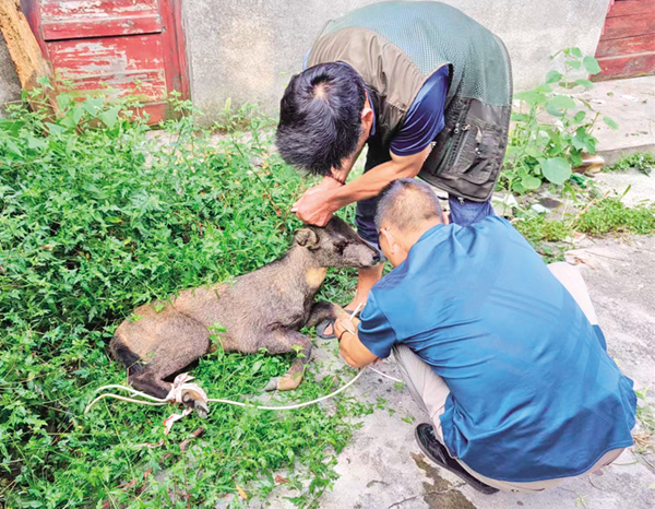 本網(wǎng)訊(通訊員 嚴(yán)共昭)8月27日中午,平利公安局八仙派出所值班民警接到求救電話:“花園嶺村道邊,一只疑似山羊的野生動(dòng)物躺在路邊一動(dòng)不動(dòng),好像受傷了,請(qǐng)速速救治!”