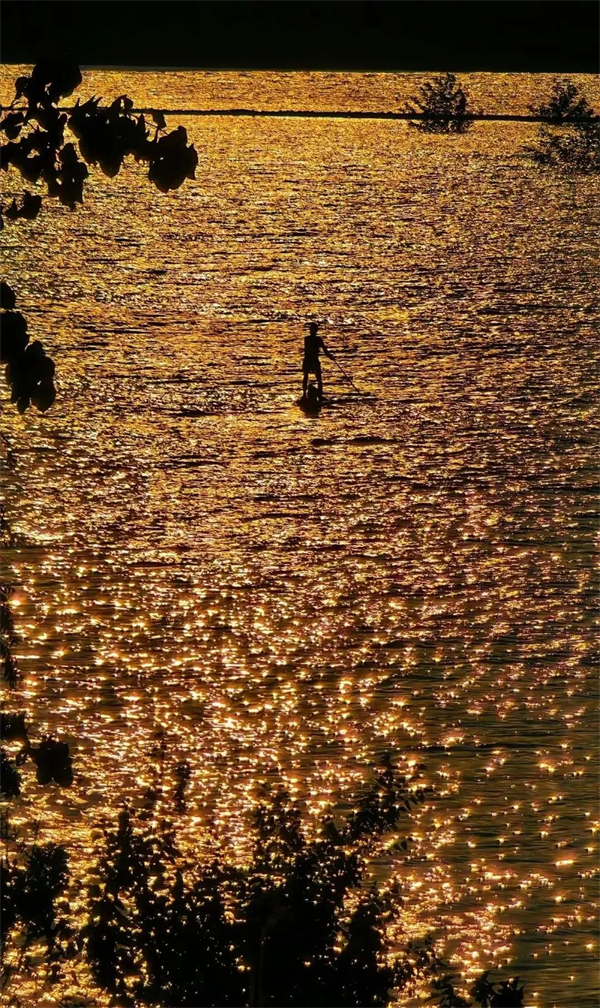 金色的夕陽(yáng)映照在水中