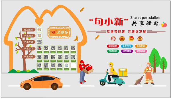 “旬小新”共享驛站按照“黨建帶群建 共建促發(fā)展”思路,秉持“需求前置、服務賦能”理念,通過整合行業(yè)部門、企業(yè)、社會三方資源,著力構建“15分鐘暖新服務生態(tài)圈”,為快遞員、外賣騎手等新就業(yè)群體提供閱讀休息、免費飲水、手機充電、應急藥箱等18項基礎服務設施。