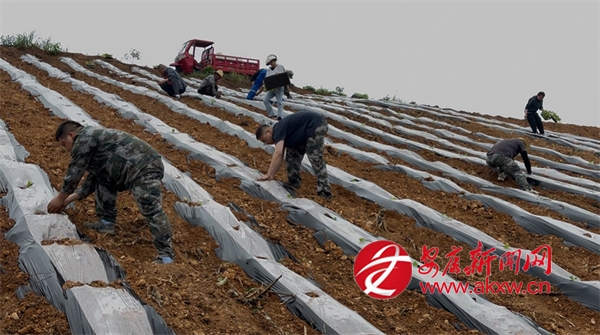 在認(rèn)真學(xué)習(xí)了技術(shù)人員傳授的“三壓三緊”科學(xué)覆膜技巧和移栽煙苗注意事項(xiàng)后,神河鎮(zhèn)干群3到4人為一組,或手持鋤頭開壟覆膜、打孔破膜,或躬身移栽煙苗,提水澆水護(hù)苗……大家分工明確、配合默契,田間地頭穿梭著忙碌的身影,此起彼伏的勞作聲與機(jī)械作業(yè)聲交織成一曲“抗旱保收”的奮進(jìn)樂(lè)章。