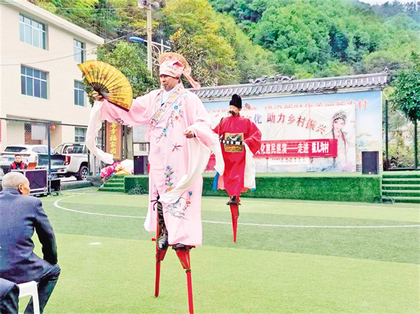 在五峰村,村支部書記羅仁春告訴記者,2023年村委會牽頭成立了五峰村文化民俗文藝協(xié)會,陸續(xù)加入的48名會員涵蓋老中青三代,既有傳承高蹺絕技的老人,也有主動學(xué)習(xí)弦子腔的年青一代。今年32歲的村民小梅加入?yún)f(xié)會后,一改往日下班后悶在家中的狀態(tài),每天下午吃完飯都會下樓和新認(rèn)識的姐妹載歌載舞,很快就成為舞蹈隊(duì)的主力。“以前不知道我們村上還有文藝協(xié)會,自從村上干部告訴我后,我就趕緊加入了這個(gè)小團(tuán)體,既鍛煉了身體,又愉悅了心情,生活幸福感越來越強(qiáng)烈?!鄙碇璧阜男∶飞碜随鼓?,水袖飛揚(yáng)間,明媚的笑容如花一樣燦爛。