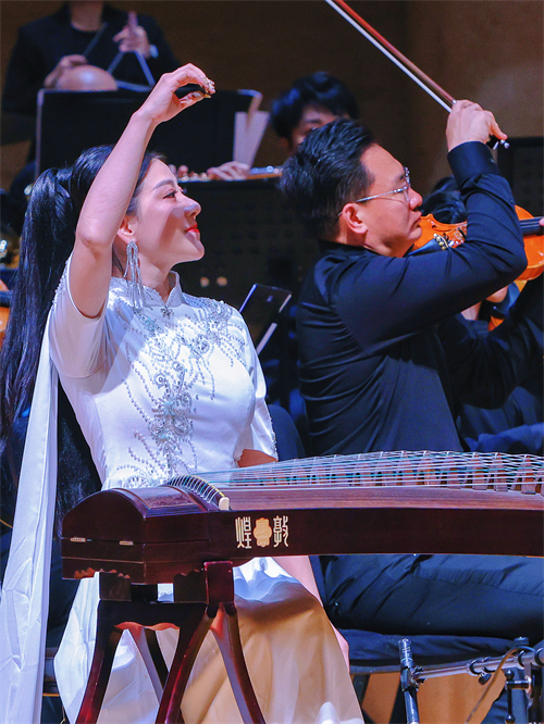 教學與生活交織的間隙,她更將古箏化作安康遞給世界的一張閃亮名片。數(shù)年來,唐曉敏屢次受邀參加國內(nèi)外各種文化交流活動。從韓國、泰國摘得國際金獎,到維也納金色大廳新年交響音樂會,再到北京中山堂《瑤族舞曲》領(lǐng)奏、央視建黨百年舞臺……她的箏聲跨越山海。2023年,作為“中阿國際文化大使”及中華箏樂團代表,她在阿聯(lián)酋奏響友誼樂章;今年的戛納國際電影節(jié)“中國之夜”上,她以古箏向世界詮釋中華魅力。