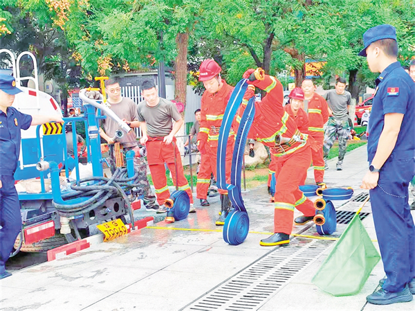 邱凱介紹,該鎮(zhèn)應(yīng)急救援隊(duì)由鎮(zhèn)級(jí)救援隊(duì)、15個(gè)村級(jí)救援分隊(duì)和水上應(yīng)急救援隊(duì)組成,共17支隊(duì)伍278人?!盀榱诉@次比武,后柳鎮(zhèn)收到通知后就積極籌備。兩個(gè)月里,參賽隊(duì)員除了到縣消防救援大隊(duì)接受專業(yè)培訓(xùn)外,平時(shí)也堅(jiān)持每周訓(xùn)練?!鼻駝P指著場(chǎng)邊的灑水車說(shuō),“這輛灑水車是鎮(zhèn)上自己改造的,不僅成本低,也更適合鎮(zhèn)情實(shí)際,五層樓以上的救援也能覆蓋。?