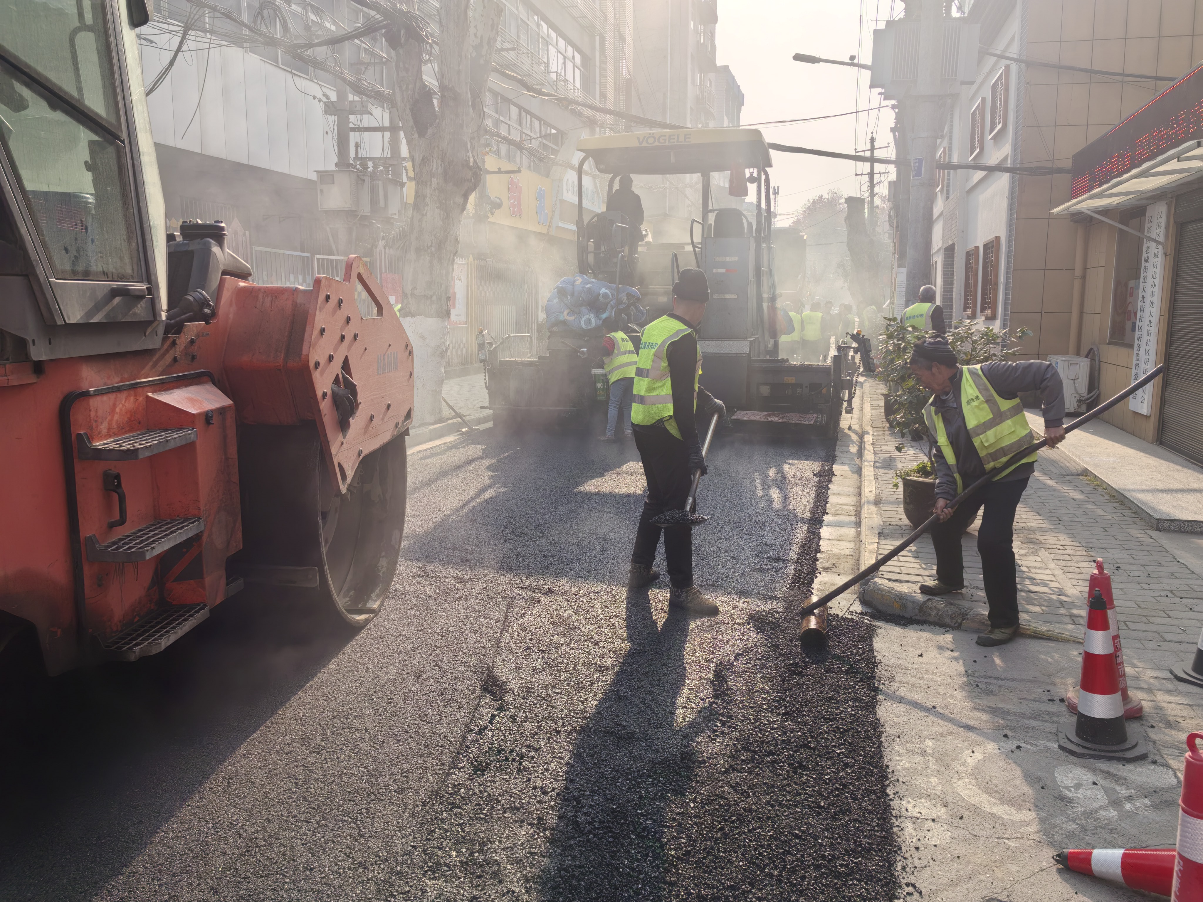 1月17日,我市中心城區(qū)小北街道路提升改造工程進(jìn)入瀝青面層鋪設(shè)階段。(錢運(yùn)立 攝