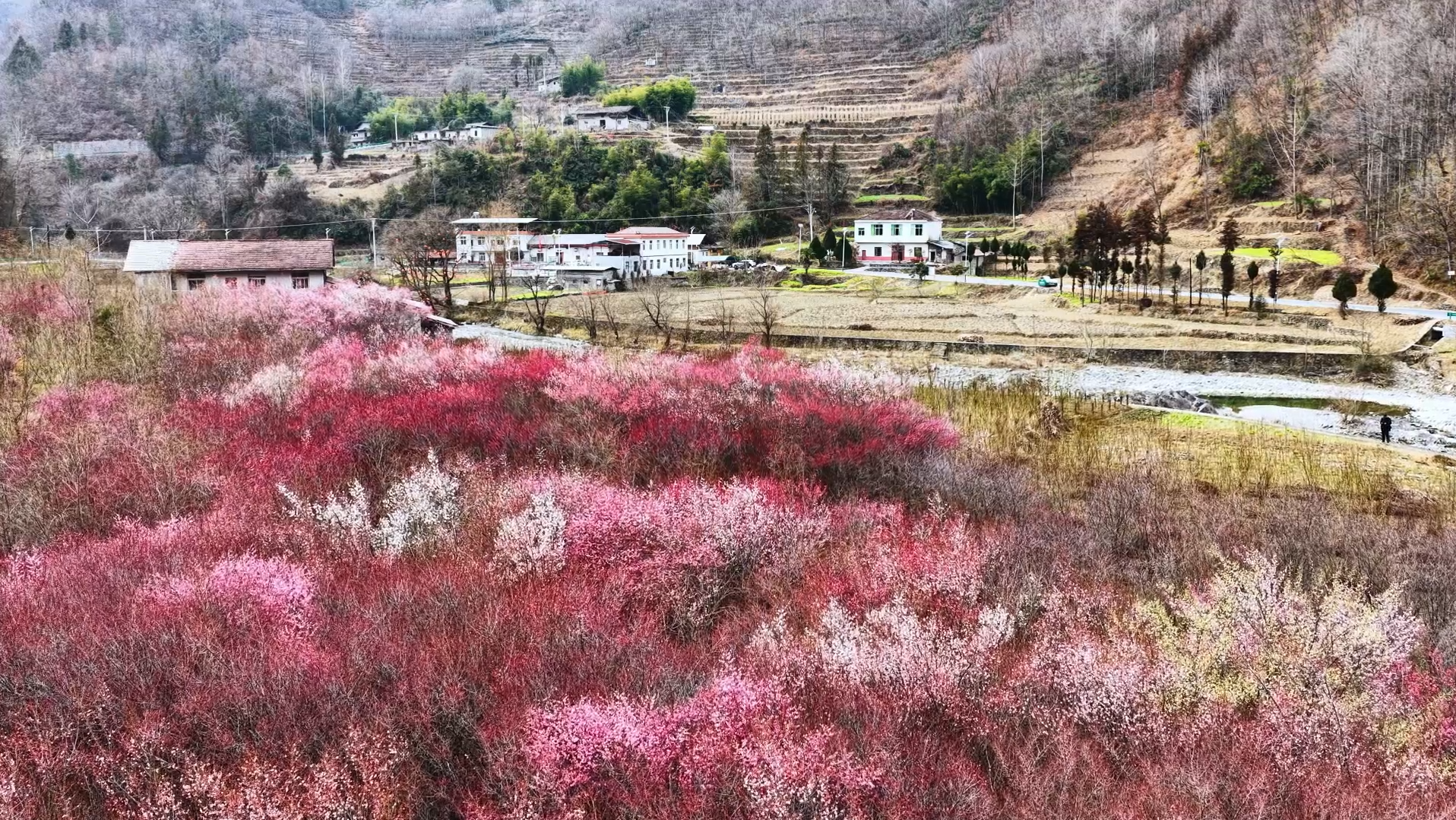 立春以來,鎮(zhèn)坪縣曙坪鎮(zhèn)和平村梅林迎來盛花期,各色梅花競(jìng)相吐蕊、繁花滿枝,成為鎮(zhèn)坪初春賞景、拍照打卡目的地。姚登 攝