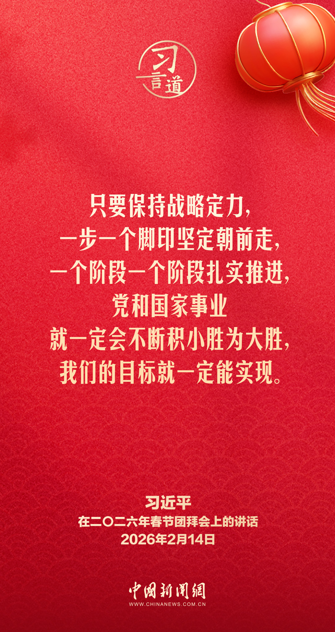 2月14日,中共中央、國務(wù)院在人民大會堂舉行2026年春節(jié)團拜會。中共中央總書記、國家主席、中央軍委主席習(xí)近平發(fā)表講話,代表黨中央和國務(wù)院,向全國各族人民,向香港特別行政區(qū)同胞、澳門特別行政區(qū)同胞、臺灣同胞和海外僑胞拜年。他指出——