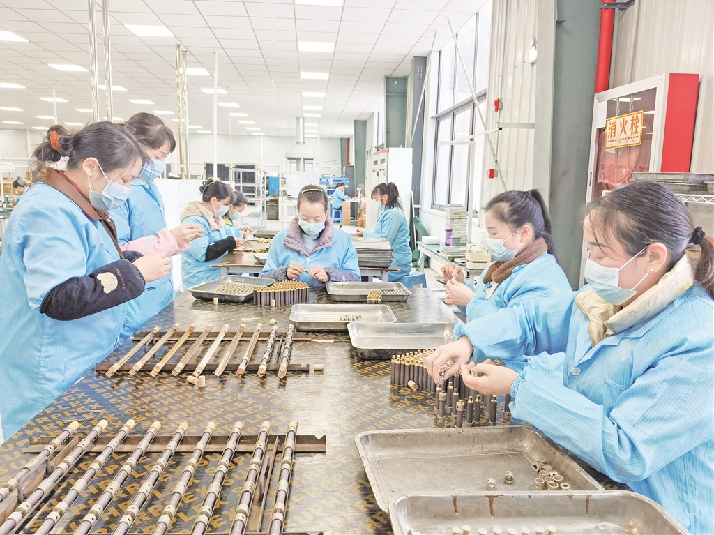 在陜西歐西克電子有限公司生產(chǎn)車間,各條生產(chǎn)線滿負(fù)荷運轉(zhuǎn),高壓陶瓷電容器、GPS天線片等產(chǎn)品有序生產(chǎn)。從電子器件成型、燒制、焊接,到絲網(wǎng)印銀、質(zhì)量抽檢,每一道流程都嚴(yán)謹(jǐn)規(guī)范、精益求精,以高標(biāo)準(zhǔn)保障產(chǎn)品質(zhì)量?!皬?fù)工復(fù)產(chǎn)后,企業(yè)將趕制訂單作為核心任務(wù),全力保障訂單交付。”負(fù)責(zé)人高維軍信心滿滿地表示,“2026年企業(yè)將聚焦生產(chǎn)設(shè)備更新與產(chǎn)能提升,加大科技創(chuàng)新和設(shè)備投入,爭取實現(xiàn)年產(chǎn)值9000萬元的目標(biāo),帶動更多群眾在家門口就業(yè)增收。”