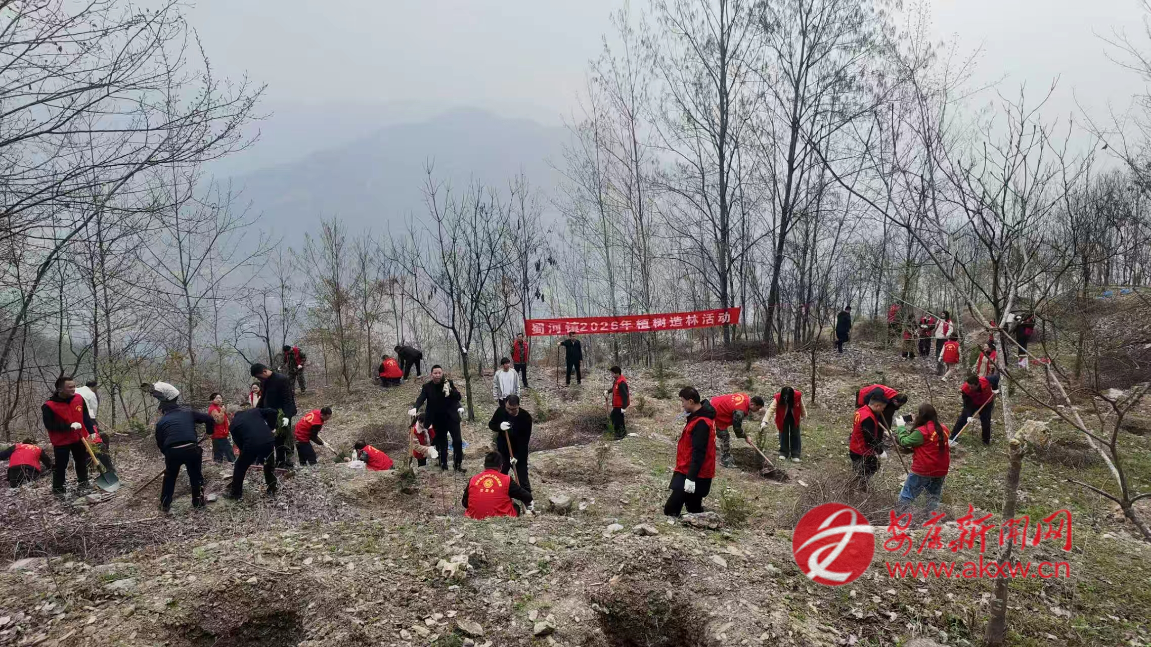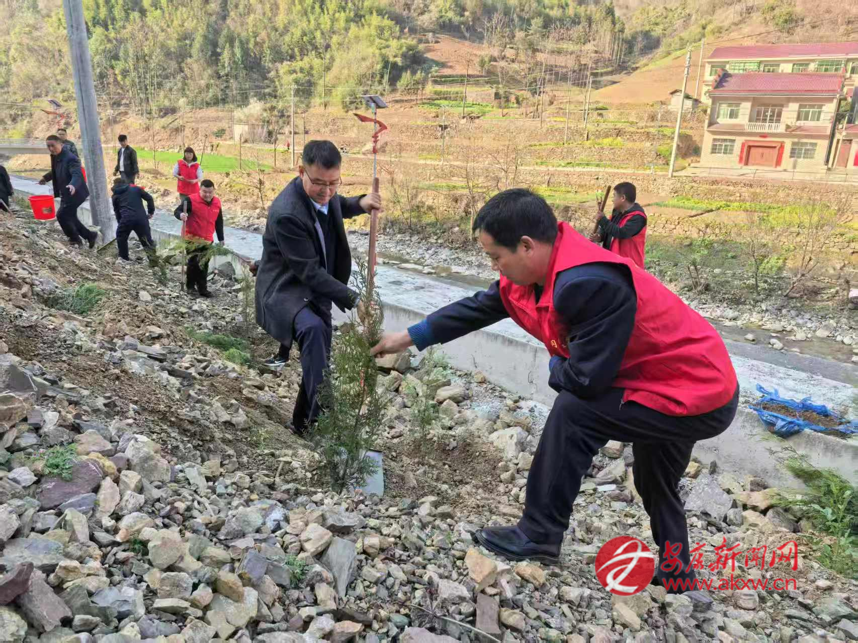 紅軍鎮(zhèn)組織機關(guān)干部、豐積社區(qū)黨員干部及群眾代表在李家院子開展義務(wù)植樹活動