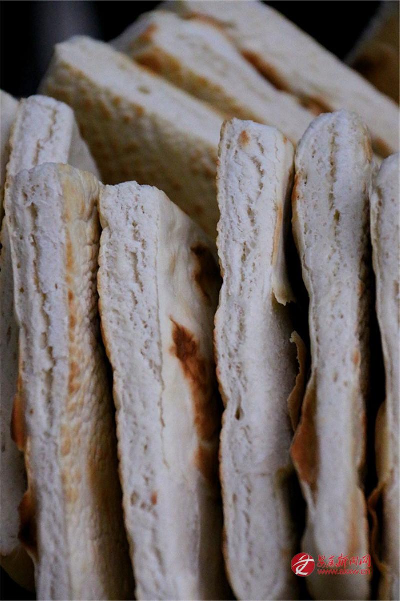 安康的牙牙兒饃是發(fā)面的。發(fā)面,在北方多用于蒸饅頭、包子,用來打饃且泡在湯里吃的,似乎不多見。安康人卻偏偏這么做了。面粉加了酵母,醒得恰到好處,不能太酸,也不能太生,揉成團(tuán),搟成圓,在鏊子上烙。火候要適中,兩面烙得焦黃,帶著些許褐色的斑點(diǎn),像是虎背上的花紋,雖不如西安饦饦饃那般白凈,卻多了一股子麥香和火氣。