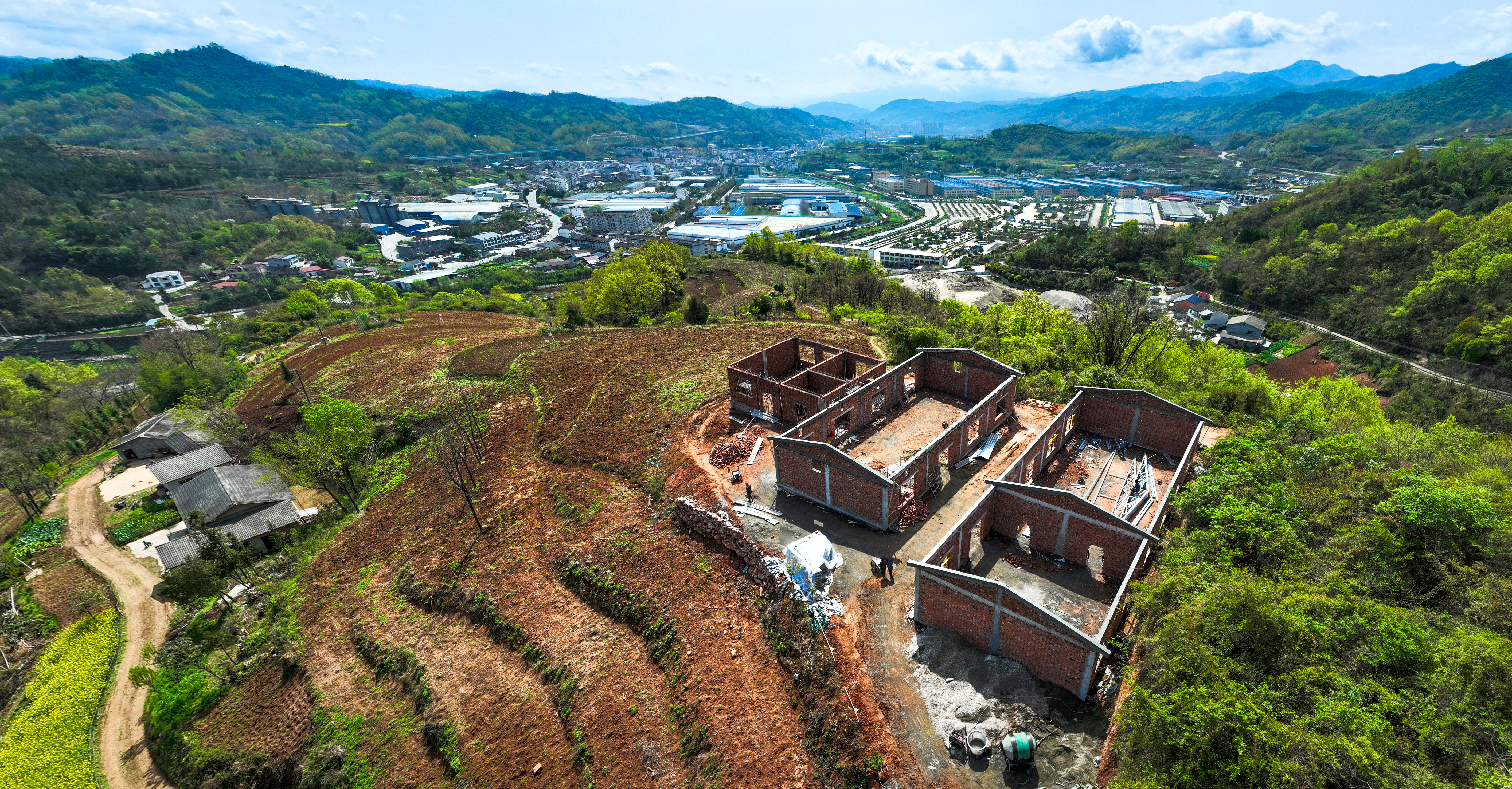 4月1日,石泉縣城關(guān)鎮(zhèn)標(biāo)準(zhǔn)蠶室建設(shè)項(xiàng)目正加快推進(jìn)。今年,該鎮(zhèn)新建5處標(biāo)準(zhǔn)化蠶室,總建筑面積達(dá)1070平方米。項(xiàng)目建成投用后,預(yù)計(jì)全年可新增養(yǎng)蠶量3000張,將有效提升當(dāng)?shù)匦Q桑產(chǎn)業(yè)規(guī)?;?biāo)準(zhǔn)化水平,為助力群眾增收、推動(dòng)鄉(xiāng)村產(chǎn)業(yè)振興注入新動(dòng)能。圖為即將完工的黃荊壩社區(qū)標(biāo)準(zhǔn)化蠶室和300畝密植桑園。 董長松 攝